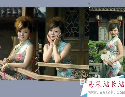 2、把這些組合好的照片圖片拉到幻燈片的右側,準備進入“膠片”的區(qū)域。