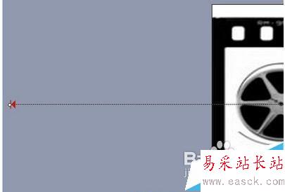 3、綠箭頭不動它,把紅箭頭向左拉,一直拉過幻燈片,一直拉到幻燈片的左邊一段距離之后,因為要留給這組照片足夠的走動空間。