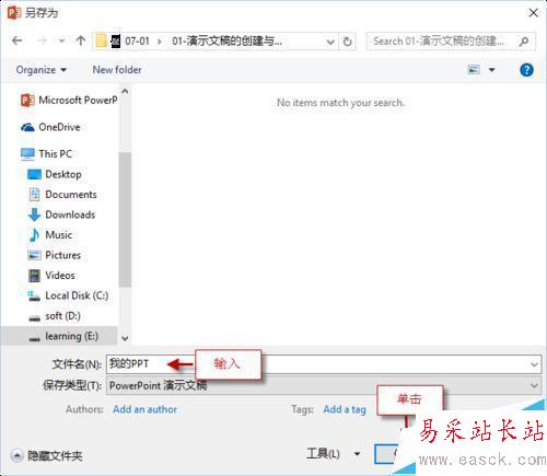 3、在打開的對話框中設置演示文稿的保存位置,輸入文件名后,單擊”保存“按鈕,如下圖所示。