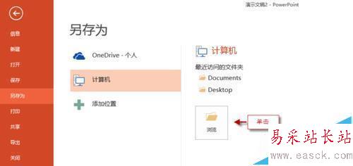 2、在切換到的”另存為“選項卡中單擊右側的”瀏覽“按鈕,如下圖所示。