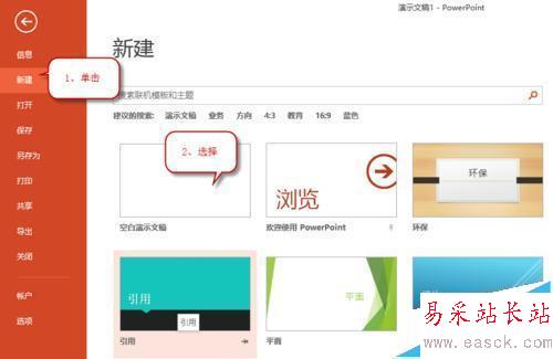 PPT2013中為用戶提供了多種演示文稿模板,用戶可以選擇一個自己需要的模板進行演示文稿的新建,其具體操作方法如下。