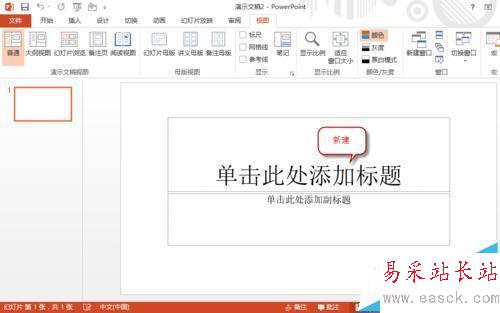 空白演示文稿就相當于一張畫布,它是所有對象(如文字、圖片、形狀等)的載體,用戶可通過想象在其中任意發揮,所以空白演示文稿的新建就顯得很重要,其具體操作方法如下。