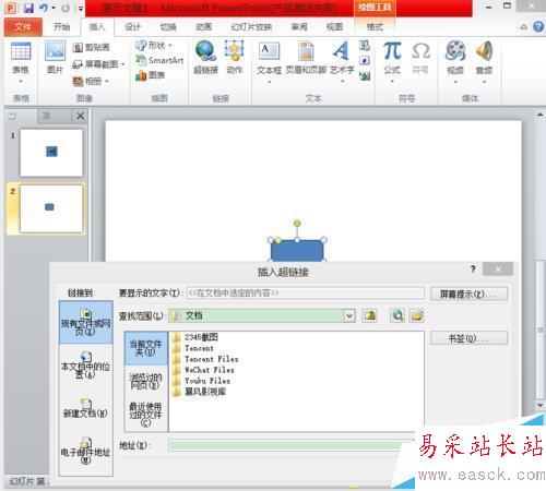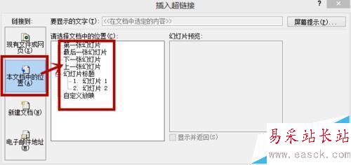 5、最常用的是“本文檔中的位置,我們可以連接到其他幻燈片,網頁版的PPT就是用這種方法制作的。