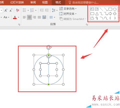 3、然后我們設(shè)置好我們的圖形過后,我們框選我們的圖形,可以看到我們的圖形是是散亂的,如果有時候我們移動圖形的時候,如果是分散的圖形的話,移動或者修改都是非常不方便的,所以我們就需要把這幾個圖形經(jīng)行組合起來。