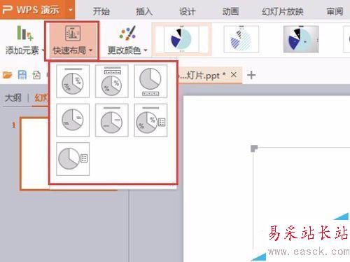 5、快速布局,可以一鍵設(shè)定常見(jiàn)的餅形圖的布局格式。