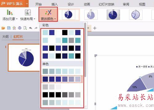 6、更改顏色,可以調(diào)整餅形圖的顏色。