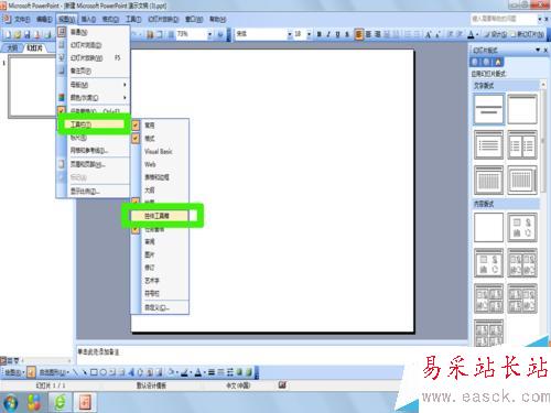 1、新建一個(gè)ppt文件,執(zhí)行視圖-工具欄-控件工具箱,調(diào)出控件工具箱。
