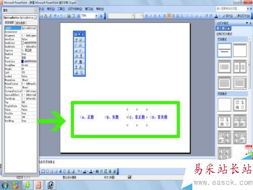 5、將A.正數(shù)復(fù)制三個(gè),并修改成不同的選項(xiàng)文字,并設(shè)置其相應(yīng)的屬性。