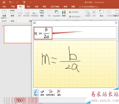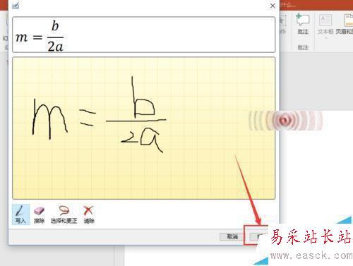 6、公式輸入完成后,點擊手寫窗口右下角的“插入”按鈕。