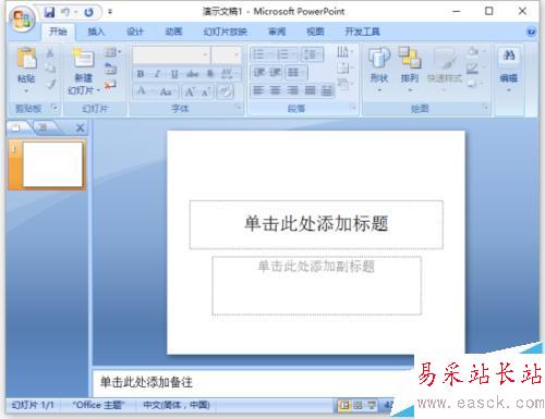 6、之后返回到PowerPoint編輯窗口,在標題欄上可以看到我們當前的文件是以【副本(1)】方式打開的。如圖所示;