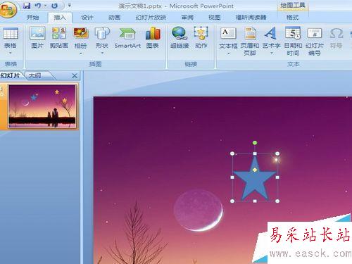 動畫制作工具其實只要掌握了技術要領,熟悉了工具的使用方法,用簡單的創意基本上可以完成自己想要實現的動畫效果。用PPT的繪畫工具繪制不同顏色和大小的星星,然后使用放大、縮小動畫效果,以及動畫播放時間順序就可以,簡單的制作出星空的效果。