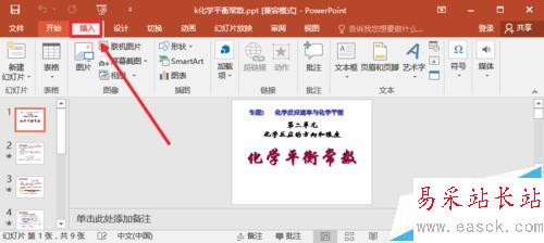 1、打開需要添加背景音樂的PPT,然后在一張PPT上點擊插入菜單。