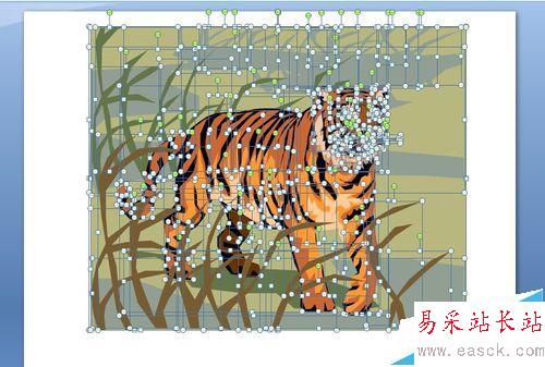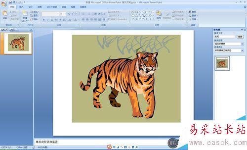 6、最后僅剩下一只老虎,再選中所有圖片,執行【組合】/【重新組合】,就完成了制作一只老虎,如圖: