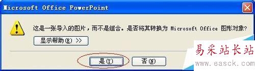 3、選擇【取消組合】后,會彈出一個對話框,選擇【是】,如圖: