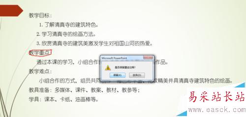 6、播放完ppt之后,退出時會出現需要保存或放棄頁面時,可根據選項選擇。