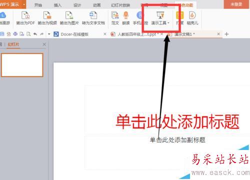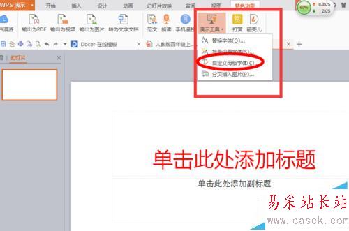 4、單機演示工具之后在下拉菜單中我們可以看到“自定義母版標題”單擊選擇