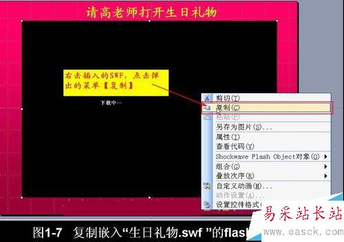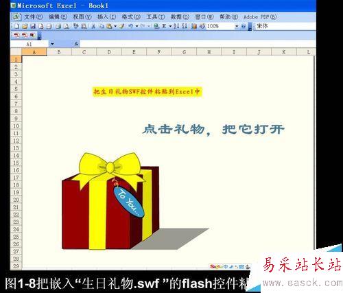 新建一個(gè)excel文檔,,打開該文檔,將PPT中的flash控件( ShockWave Flash Object )復(fù)制,粘貼到excel ,另存為“生日禮物.xls”,見圖1-7至圖1-9
