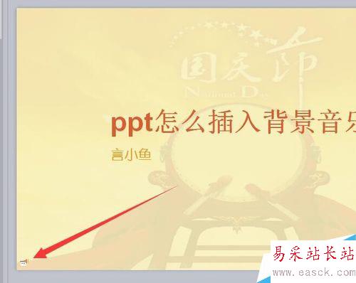 5.插入完成后會在ppt首頁左下角看到有個小喇叭的圖標。