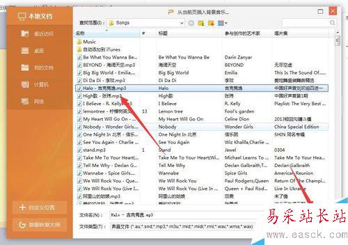 4.這時候會彈出一個選擇框,選擇要插入的音樂即可。