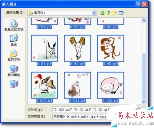 2、在打開的“插入圖片”對(duì)話框,通過按住Ctrl加鼠標(biāo)單擊,選中需要插入的圖片,單擊“打開”命令按鈕。