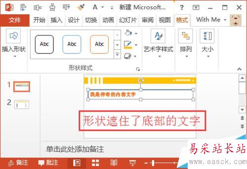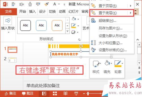 看著文字在頁面上,母版中也沒有該“文本/形狀/圖形”,此時可能是該圖形處于底層。