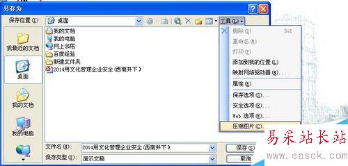 第二:單擊另存為對話框右邊工具,然后單擊壓縮圖片,如下圖