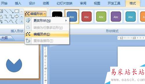 第三步:點擊標題欄的“繪圖工具”-“格式”-“編輯形狀”-“編輯頂點”,
