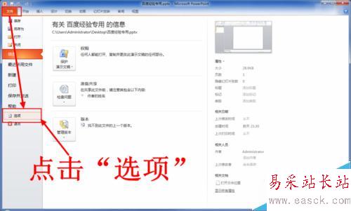 3、Flash文件是不能直接插入PPT中的,需要使用Flash控件。首先進入工具欄的“文件”選項卡,然后點擊“選項”。