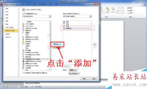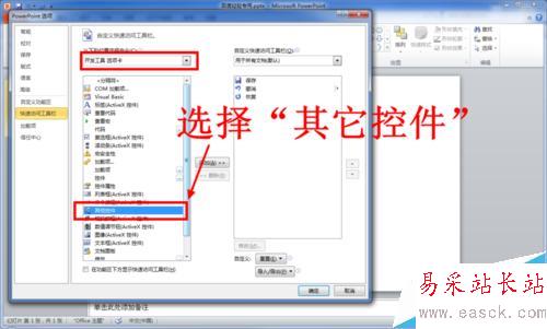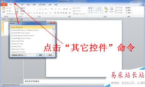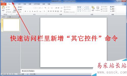 9、回到PowerPoint編輯主界面,此時你會發現在PowerPoint頂部的快速訪問工具欄新增了“其他控件”工具。