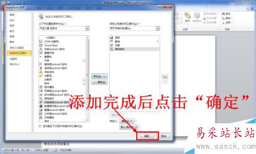 8、添加完成后點擊PowerPoint選項窗口下方的“確定”即可。