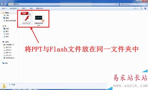 1、將需要插入幻燈片的Flash文件與PPT文件放在一個文件內。(也可以不放在一個文件夾內,但為了后面的設置簡單,所以建議大家放在一個文件夾內)。