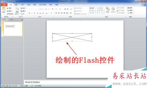 13、點擊確定后鼠標指針會變成“+”字形,此時按住鼠標左鍵繪制一個矩形Flah控件即可(隨意大小就行,大小都是可以隨時更改的)。