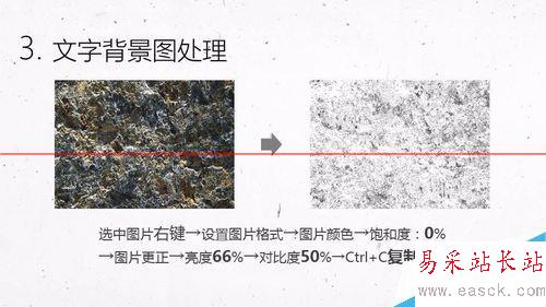 3、文字背景圖處理。將圖片飽和度設(shè)置為0%→亮度66%→對比度50%→Ctrl+C復制該圖。