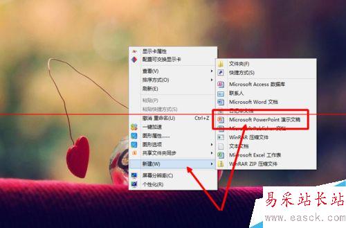 2、點擊右鍵,選擇“新建”,點擊新建“PowerPoint演示文檔”,并命名為“百度經驗”