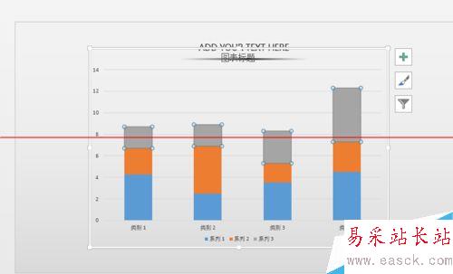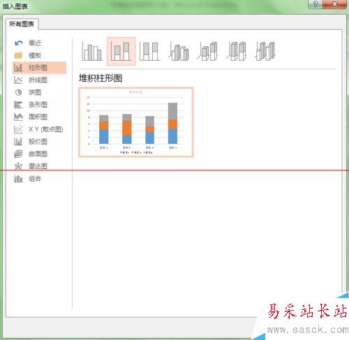 2、點擊插入命令,找到柱形圖,堆積柱形圖,點擊插入,這樣一個堆積柱形圖就插入到PPT中。