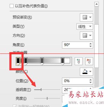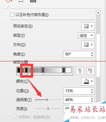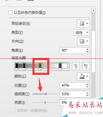 6、這一步我們對用以顯示數據大小的系列1進行美化。右鍵設置系列格式,在填充命令下,選擇漸變填充。線性90度向下,4個光圈,顏色都是黑色。第一個光圈透明度26%,第二個光圈46%,這兩個光圈位置距離較近,因為投影的正下方是最黑暗的部分。第三個光圈透明度53%,位置可以根據自己的喜好調節,最后一個光圈透明度100%,并適當調整位置。