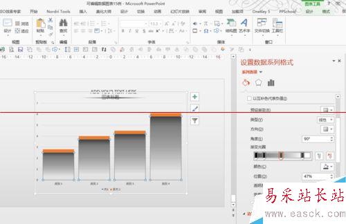 我們經常在PPT中使用圖表,限于數據圖表的種類樣式少,在圖表美化上無法達到我們的要求,很多圖表,如長陰影圖表都采用形狀來繪制的方法實現。美觀倒是美觀了,但是圖表沒有數據的支持,無法顯示真正的數據比例,而且也不方便修改,下面介紹一種長陰影數據圖表的做法,可以兩者兼顧。