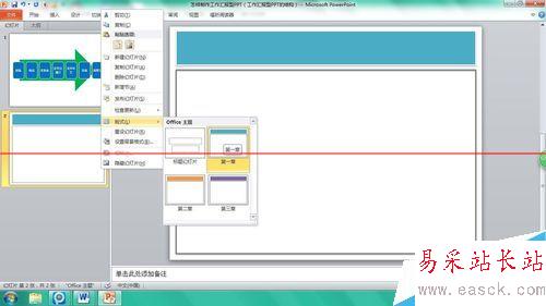 1、制作母板。封面、概述、總目錄、總結(jié)和結(jié)束頁(yè)一般都只有一頁(yè),可以不用制作母板,但是為了顯示不同章節(jié)之間的區(qū)別,不同章節(jié)過渡頁(yè)和不同章節(jié)正文頁(yè)可以使用不同的風(fēng)格,所以制作章節(jié)母板是必要的。