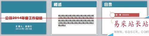 2、制作封面、概述、總目錄。根據(jù)自己的素材,分別制作封面、概述和總目錄。