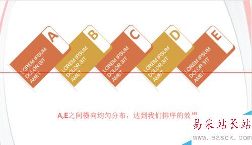 6、這時,以A項為起點,E項為終點,這段距離中所有的組合均勻橫向分布。呈現出如圖的效果。