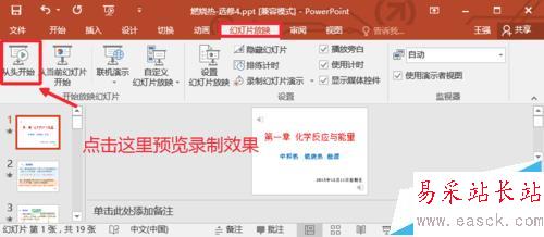 6、這樣我們對幻燈片進行講解和錄制,直到幻燈片播放結(jié)束,如圖所示,這時候我們可以點擊幻燈片放映中的從頭開始,預(yù)覽自己錄制的幻燈片,查看效果。大家要清楚,我們錄制的幻燈片演示中每一個幻燈片上都會有音量圖標,這個是正常的。