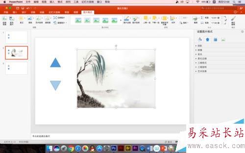 6、接著在第二張幻燈片中插入圖片,第三張中插入另一張圖片,現(xiàn)在準(zhǔn)備工作做好了,接下來就是設(shè)置了