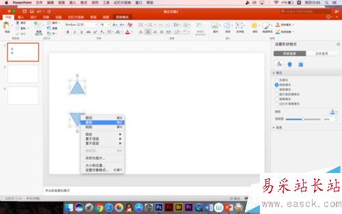 2、然后新建幻燈片,右擊新建就可以了,這樣后面的版式與前面的都是一樣的,一共三張空白的幻燈片
