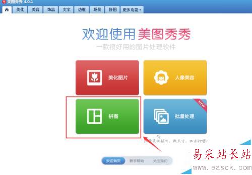 2、然后運行美圖秀秀,進入后,點擊“拼圖”