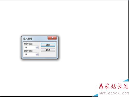 1、啟動PowerPoint2003,執行插入-表格命令,在彈出的對話框中輸入行數為11,列數為11,然后點擊確定按鈕。