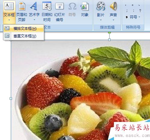 4、大小調整合適后就再次點擊插入選項,這一次我們選擇插入文本框,借文本框來插入文字。