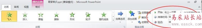 8、多個動畫播放先后順序設置,這步很重要,播放順序,時間,這是決定一個PPT美觀的重要因素。同樣也是選中帶有動畫的圖片,修改開始方式,時間以及順序。