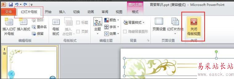 注意:一定要關閉母版,關閉之前注意保存,常按SHIFT+S是保存文檔的快捷鍵,這是好習慣的養成哦!