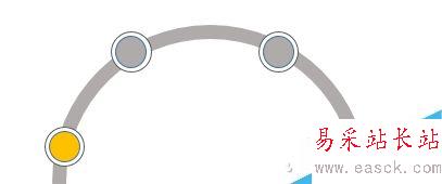 接下來的部分就很容易制作了。先畫一個大一點的白色的圓,再在其上覆蓋小一點的圓,將這兩個圓組合到一起,然后復制多個,分別放到相應的位置,并在圓中填寫序號。導航當前部分可采用彩色的圓,其他設置為灰色的。