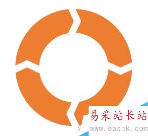 如上面例子所示,制作一個圓環圖,這里可以將圓環的寬度設置大一些,比如72磅。然后在形著中選中燕尾形箭頭,畫出四個箭頭形狀,并能過旋轉的方式調整各箭頭的位置和方向。